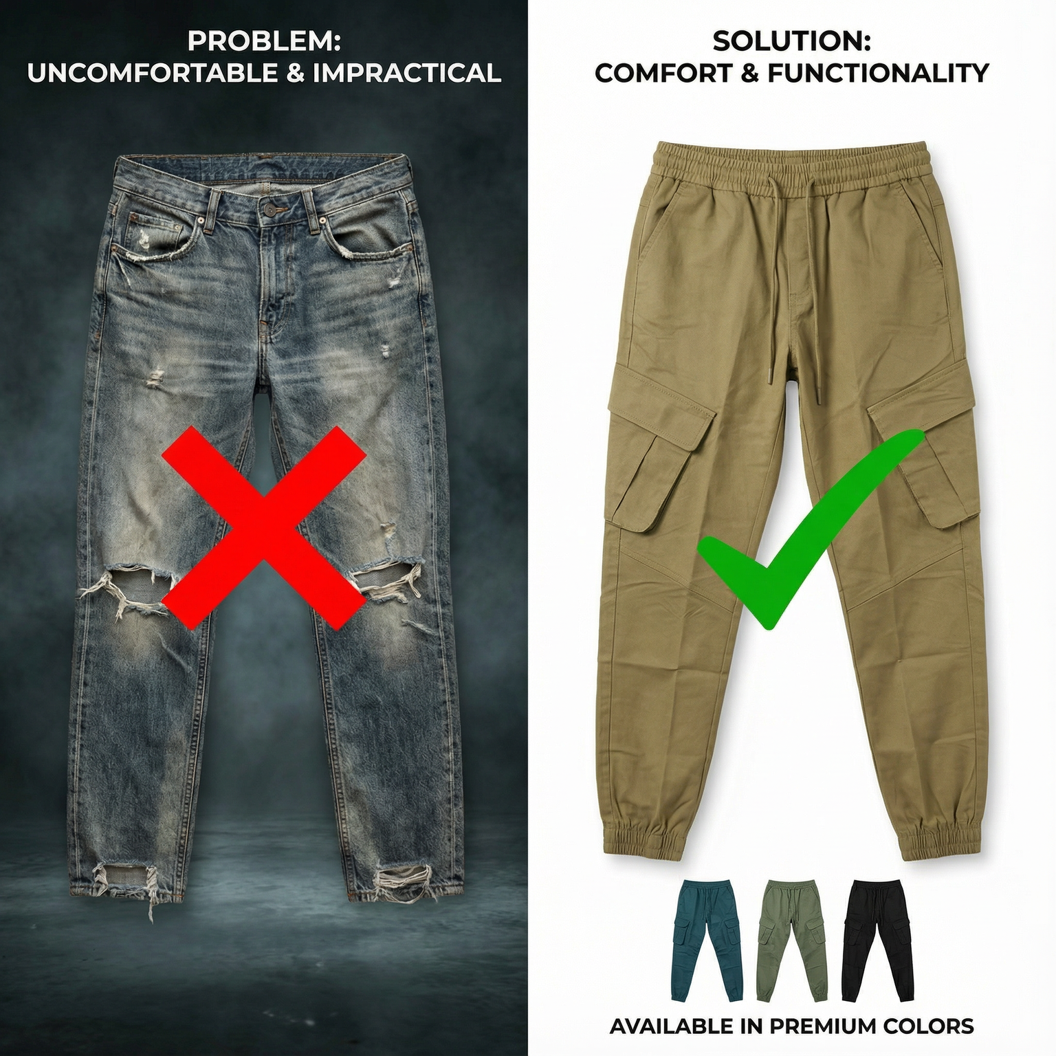 Notre Cargo Jogger Premium est bien plus qu'un simple pantalon. C'est l'investissement malin que chaque homme moderne devrait faire pour son confort quotidien et son style.